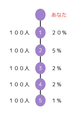 あなたはたった5人の紹介でも、その先で伸びていくことで権利的に収入が発生する仕組みとなっています。
