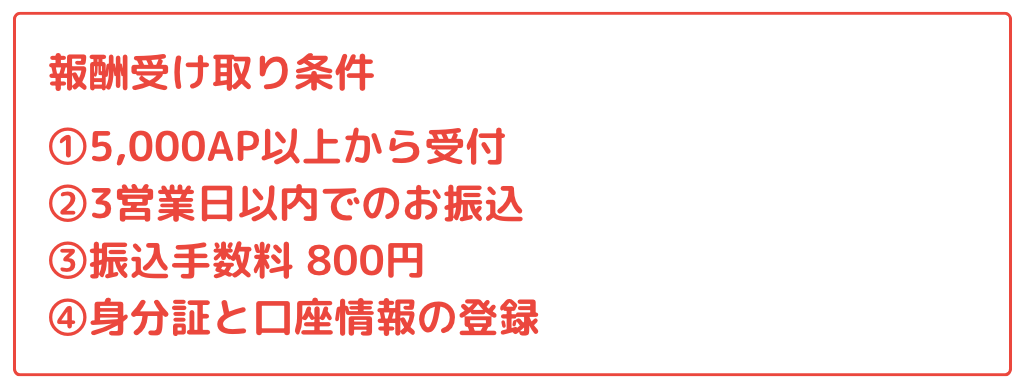 報酬受取り条件に満たしていない場合は、エラーが出ますのでお気をつけくださいませ。