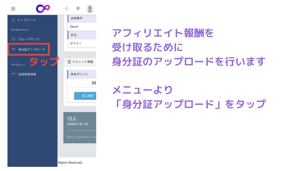 それではアフィリエイトページにおける身分証と口座情報の登録手順をご説明いたします。